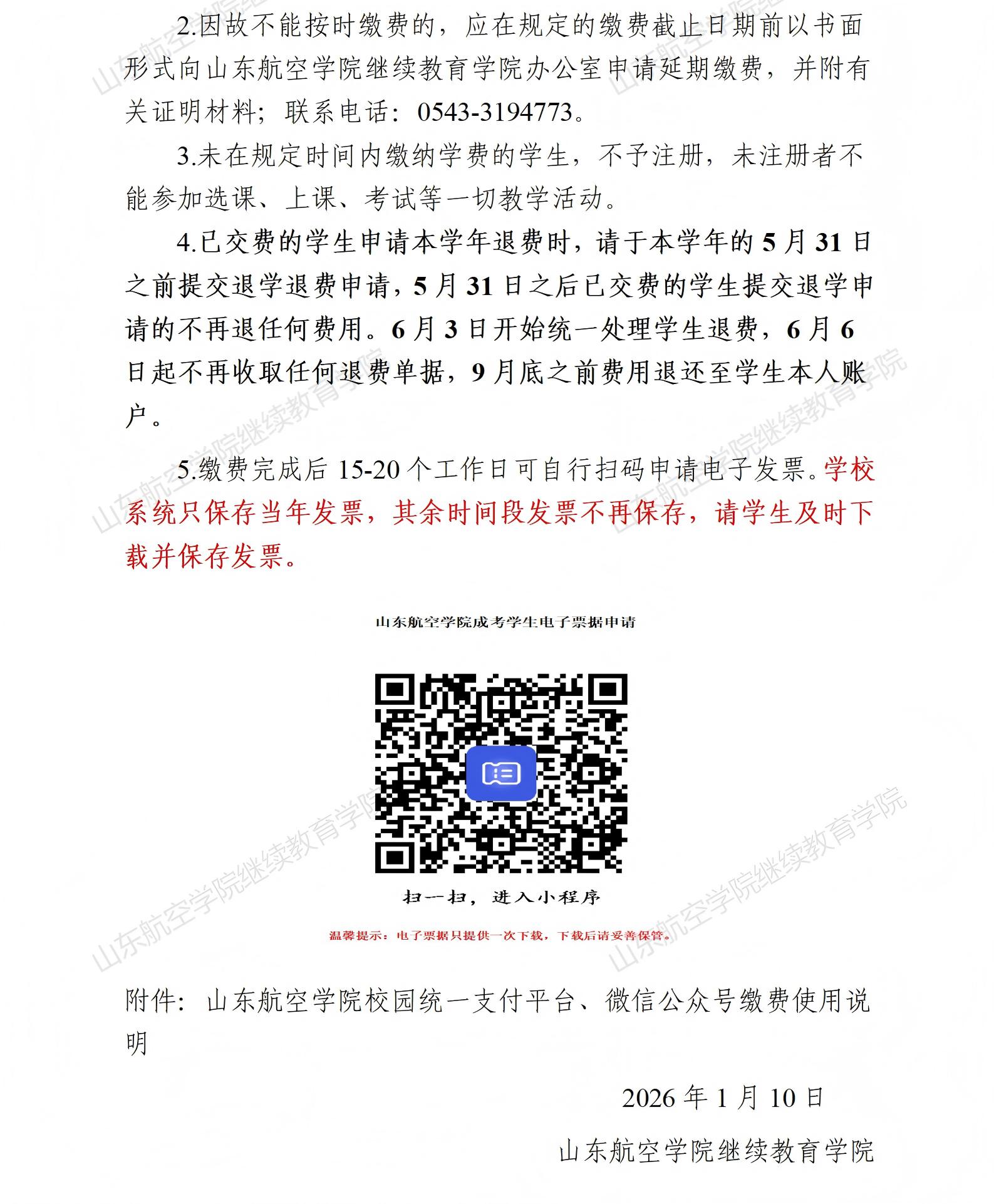 山东航空学院高等学历继续教育2026年学生学费缴纳通知及流程.pdf