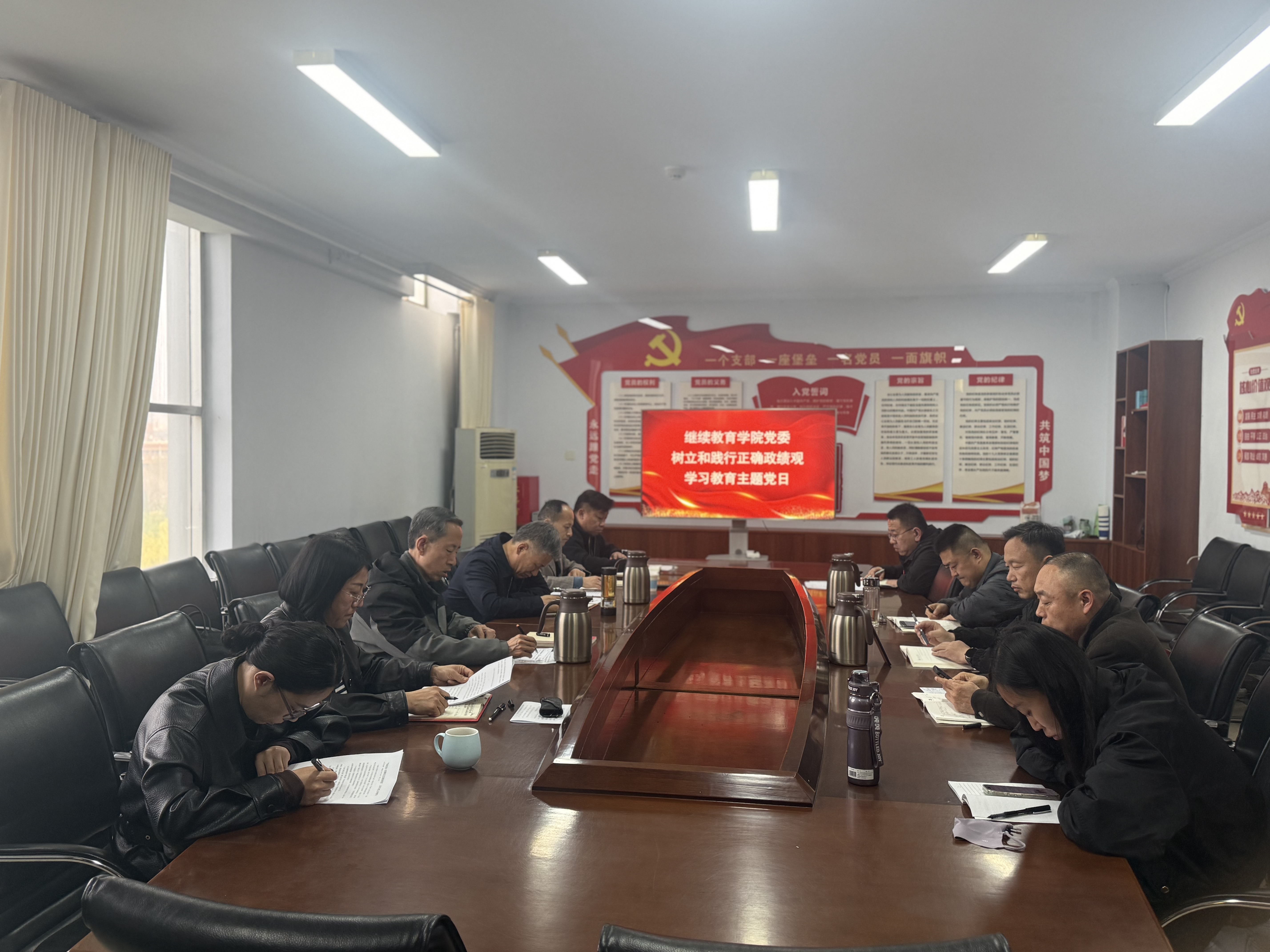 为推动树立和践行正确政绩观学习教育走深走实、见行见效,教育引导党员干部愿担当、敢担当、善担当,3月27日下午,继续教育学院党委在信息东楼513会议室组织开展了“树立和践行正确政绩观”主题党日活动。活动由学院党委书记刘占贵主持,全体党员参加。